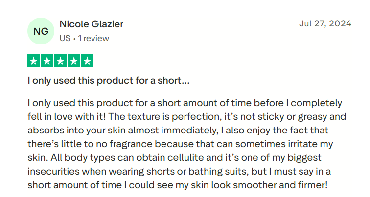 This cream is a well-formulated treatment that includes ingredients known in the skincare world (like caffeine, moisturizing and botanical extracts) that help improve skin texture, boost hydration, and reduce the visible signs of dimpled skin if used regularly.